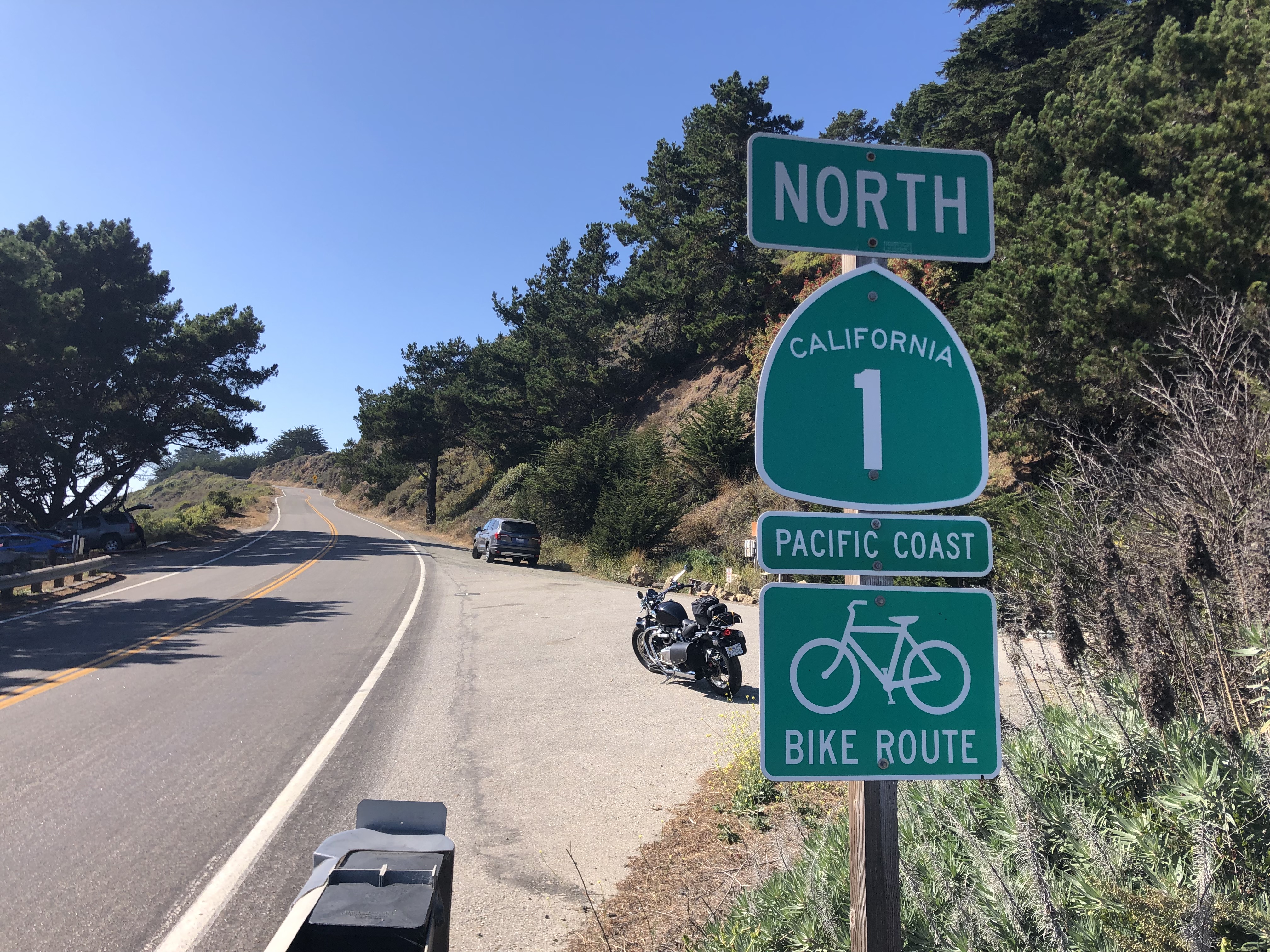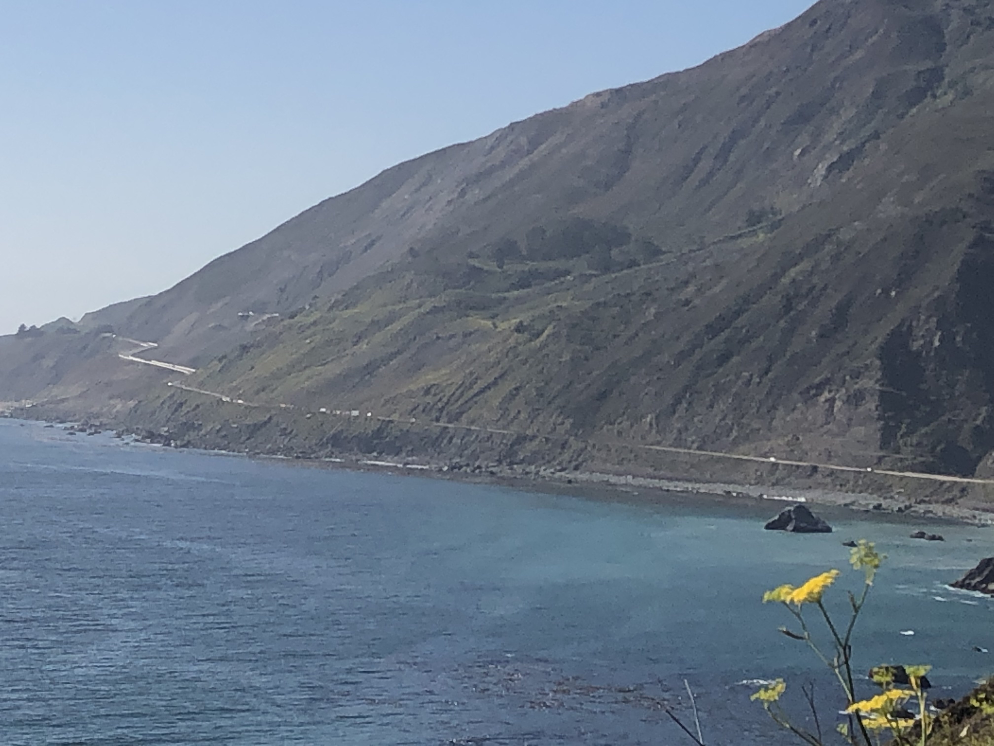 After paying my respects to the old Barnsdall building, I continued north on US 101. (Here in southern California they’d call it “the” 101.) I suppose that this whole stretch I was driving today would be considered California’s Central Coast. The road names and numbers are a jumble of US 101, CA State Route 1, the Pacific Coast Highway, Historic El Camino Real, and the Cabrillo Highway. But no matter what you call it, this stretch of road is iconic California: rocky cliffs, blue waters, sweeping curves, foggy mists. Here are a few pictures: