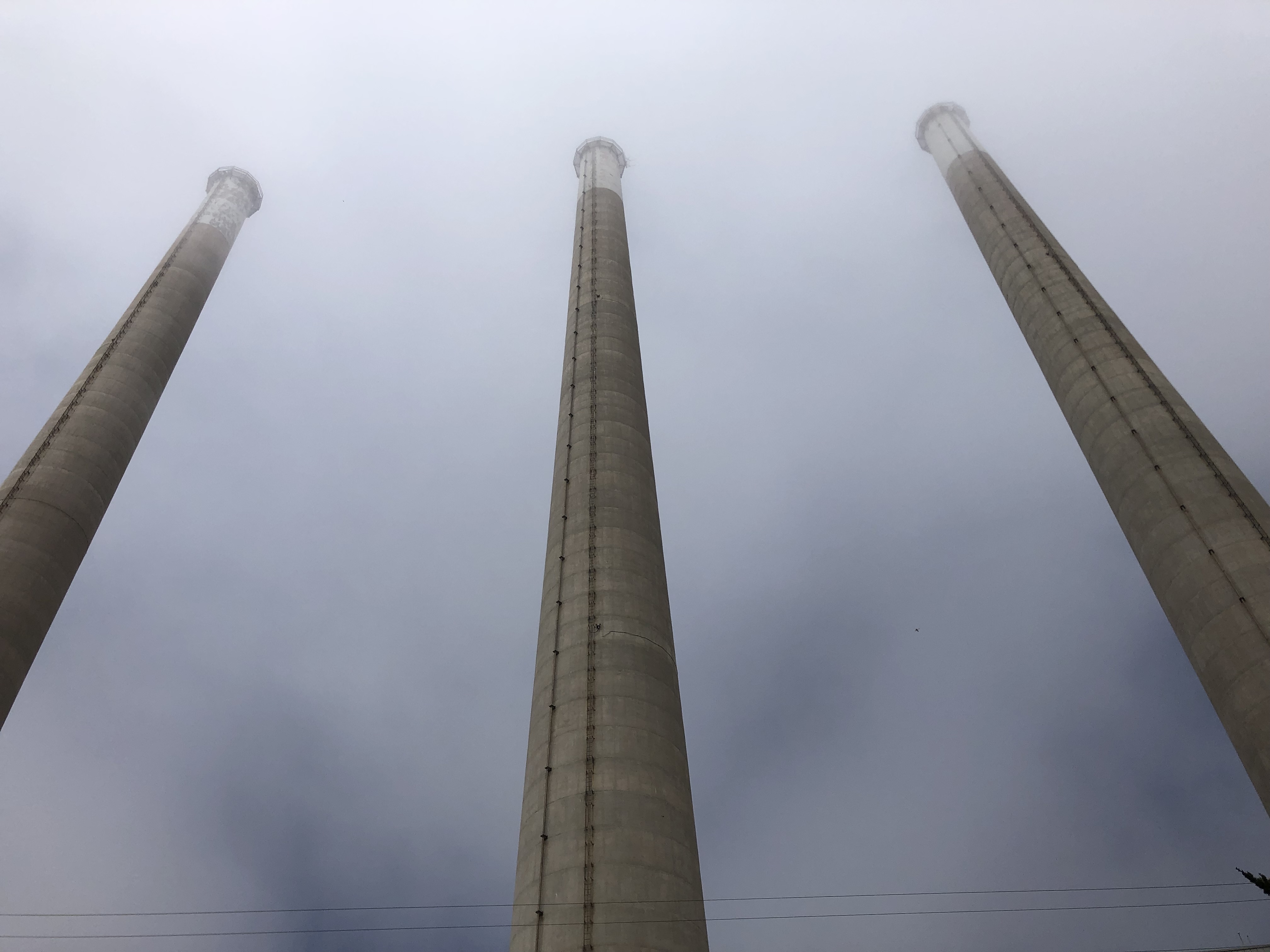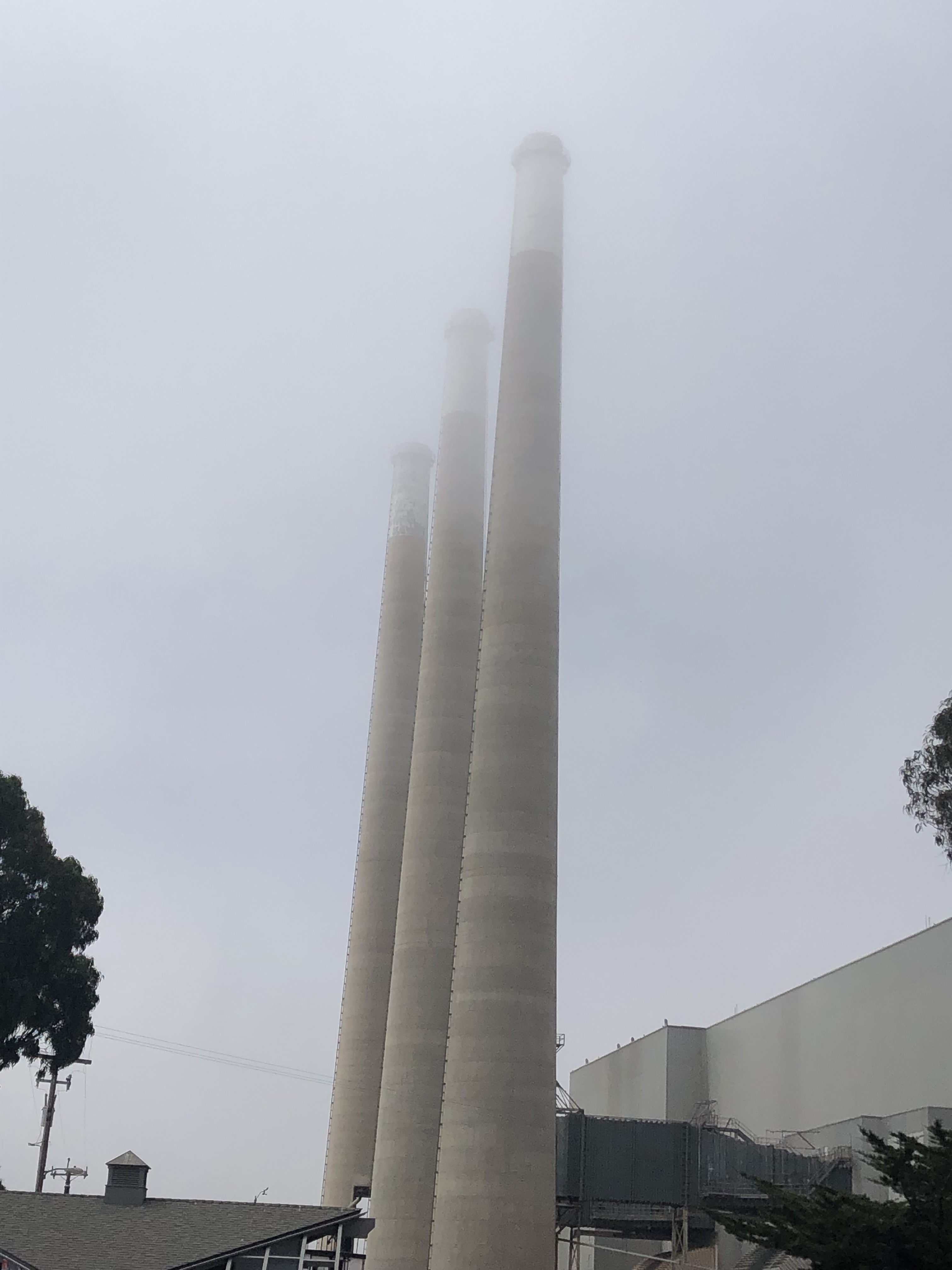 The other iconic feature of the central coast is a string of several natural gas power stations at the shoreline of various cities, each with enormous stacks reaching into the fog. There’s actually one near our home in Palos Verdes (in the town of Redondo Beach). Today I passed similar plants in Morro Bay and Moss Landing. I think that these are located near the shore because they use ocean water to produce steam and/or for cooling. But someone should correct me on that if you have other information. I think most, if not all, of these natural gas plants are either now offline or significantly throttled back, due to new environmental regulations. Still, those huge stacks have always struck me as a notable feature of California’s coast. A few pictures: