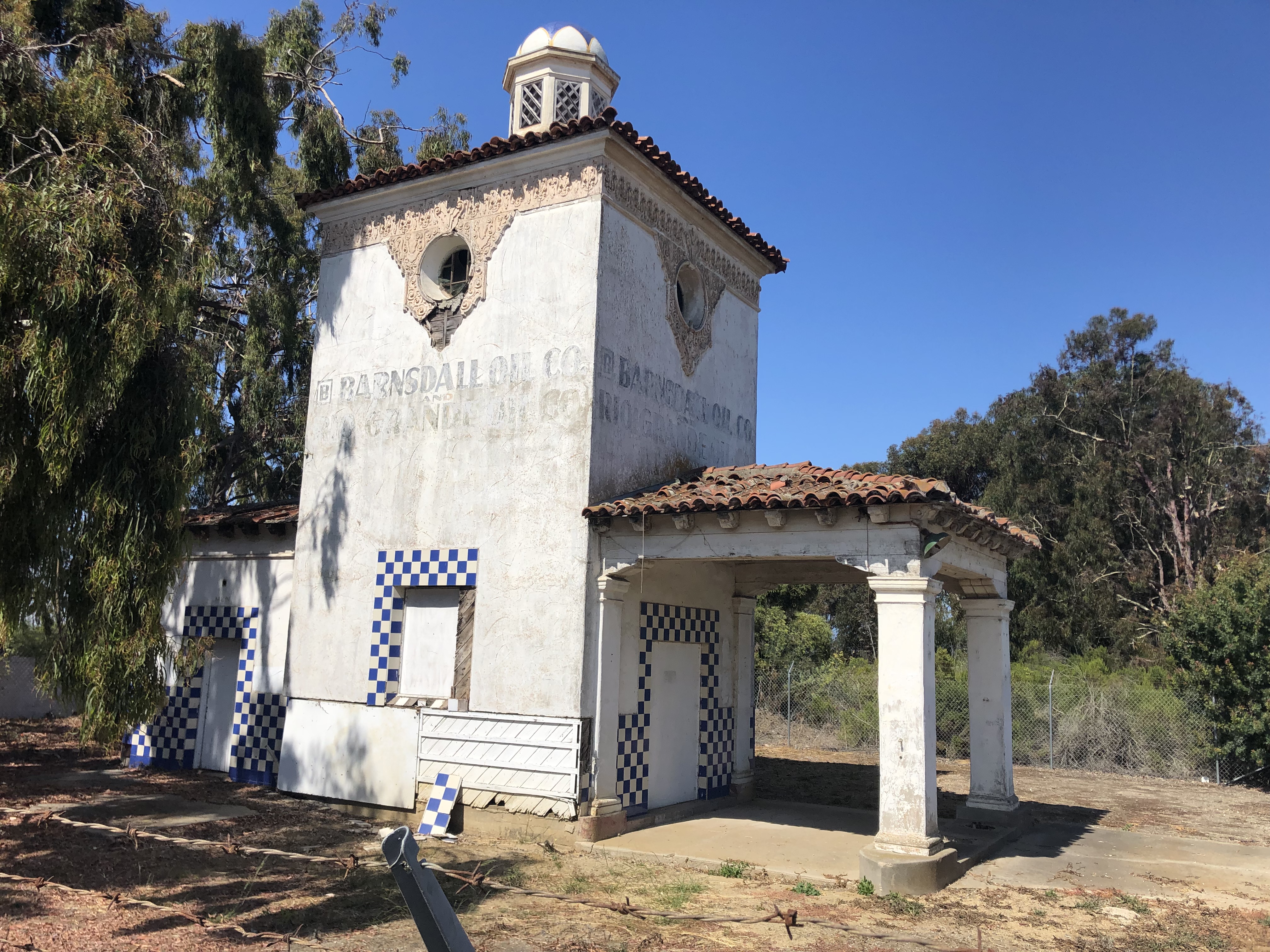 Not far from the Japanese attack site is another oil-related artifact: The Barnsdall gas station, built in 1929. It’s a beautiful Spanish Colonial building, and it’s remarkably well preserved, given that it’s been vacant since the 1950s. (It saw some brief activity in 1980, as a filming location for the remake of The Postman Always Rings Twice, with Jack Nicholson.) I’m told the building is currently owned by Ty Warner….the former kid who founded Beanie Babies. No lie. It’s unclear what Ty intends to do with the building.