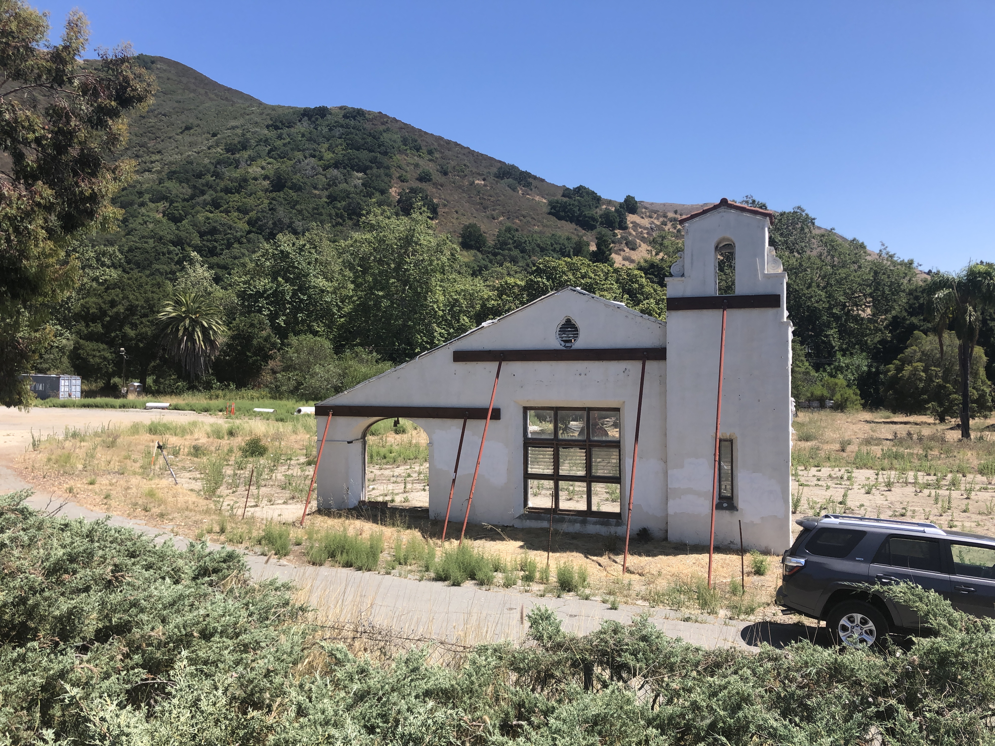 Two more historic encounters from today: When I was a lad, I had a book that listed supposedly interesting facts from history. One item that has always stuck in my head is that the word “Motel” is a portmanteau , created when a sign painter ran out of room on the side of a “motor hotel” and thus created this new, shorter term. Well, today I visited the that motel. Sort of. The place in question is the self-described “world’s first motel,” which sits along highway 101 in San Luis Obispo. A guy exiting the building told me that it’s not a functional motel any longer, used instead for corporate offices. He also couldn’t explain the lone wall that’s propped up by metal braces.