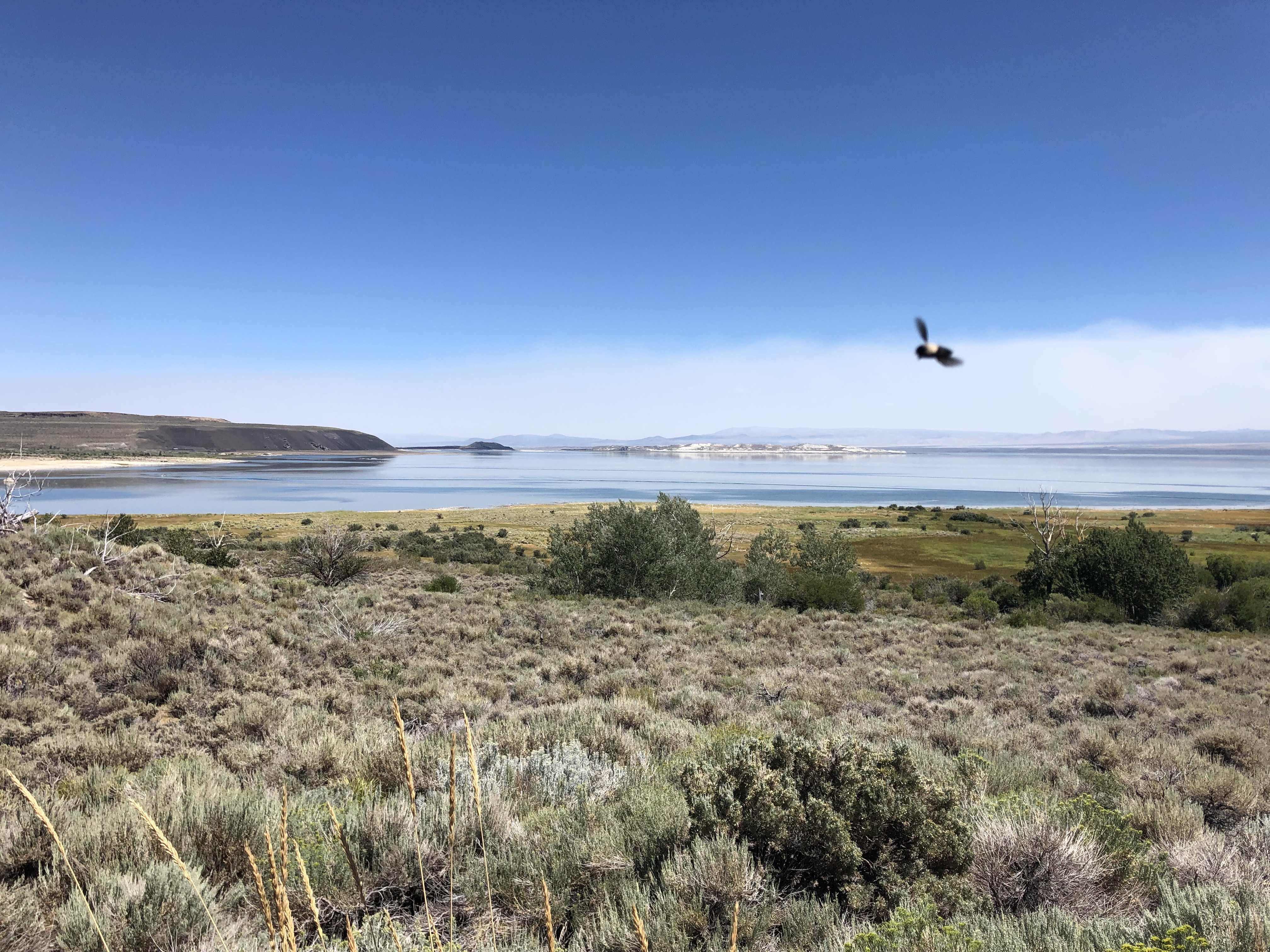 After a bit I saw the looming presence of Mono Lake. I know there’s a link between the lake’s level and the LA aqueduct. In fact, environmental and business groups in Mono County successfully sued Los Angeles for imperiling the lake by taking water from the tributaries that feed it.
