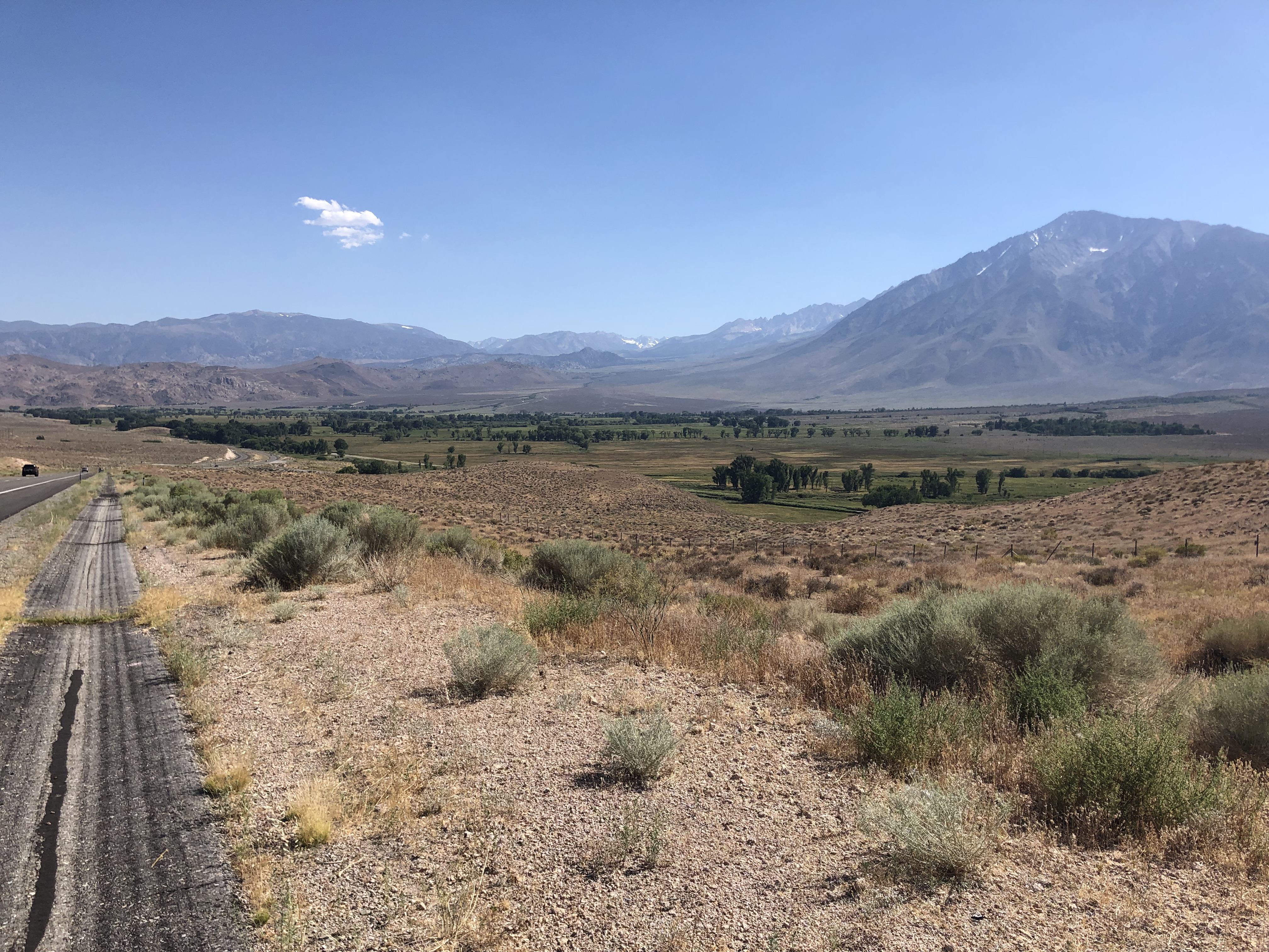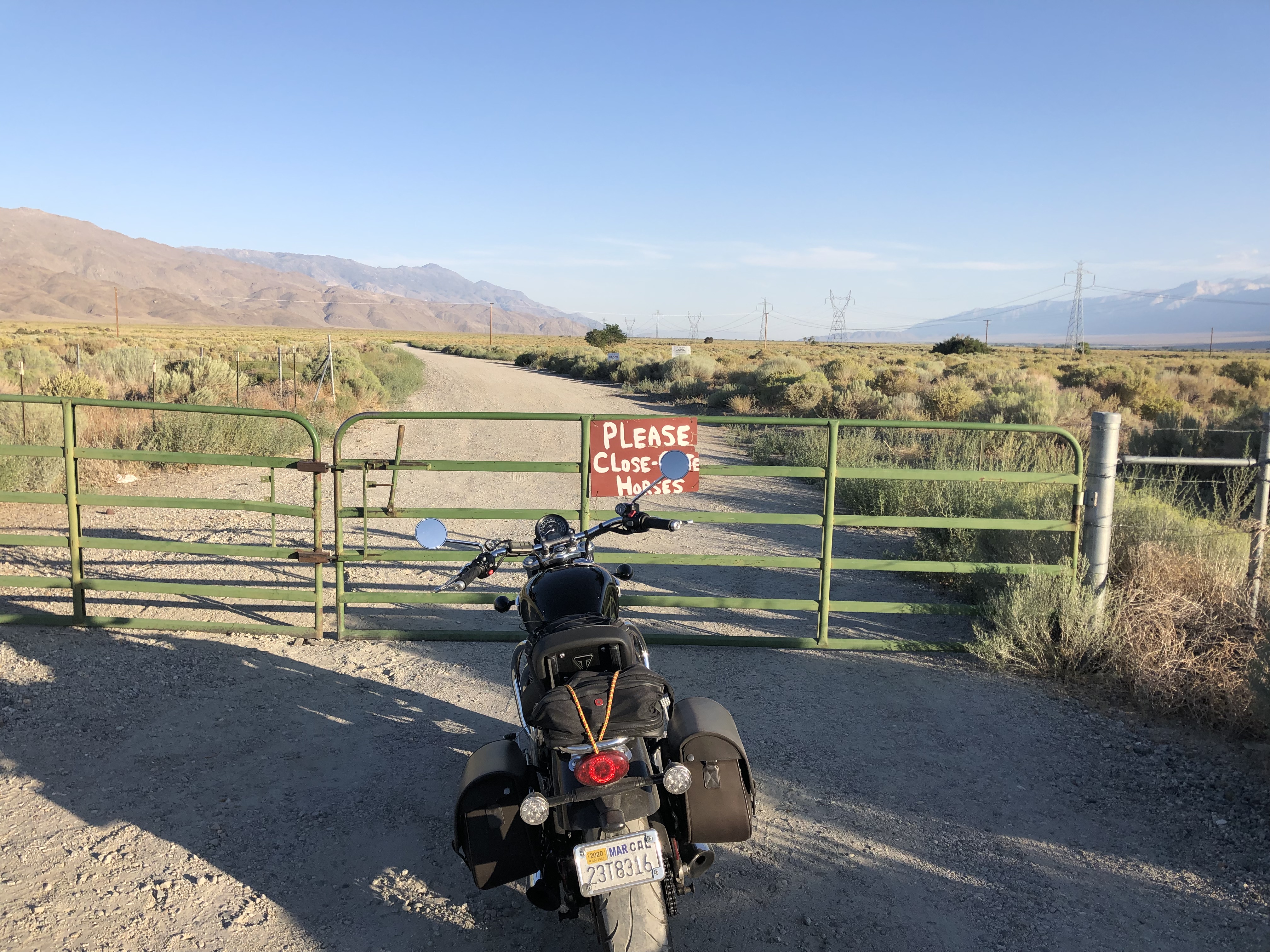 The pipeline I’d seen earlier had long since disappeared. I was surrounded by an endless, semi-arid valley. How would I be able to find the aqueduct? In desperation, I simply asked Siri. And she told me to take a dirt road near the town of Independence. Knowing that Siri is only as good as the Internet, and thus could be sending me on a wild goose chase, I wasn’t getting my hopes up. But I figured it was worth a try. I found the dirt road, and immediately encountered a gate.