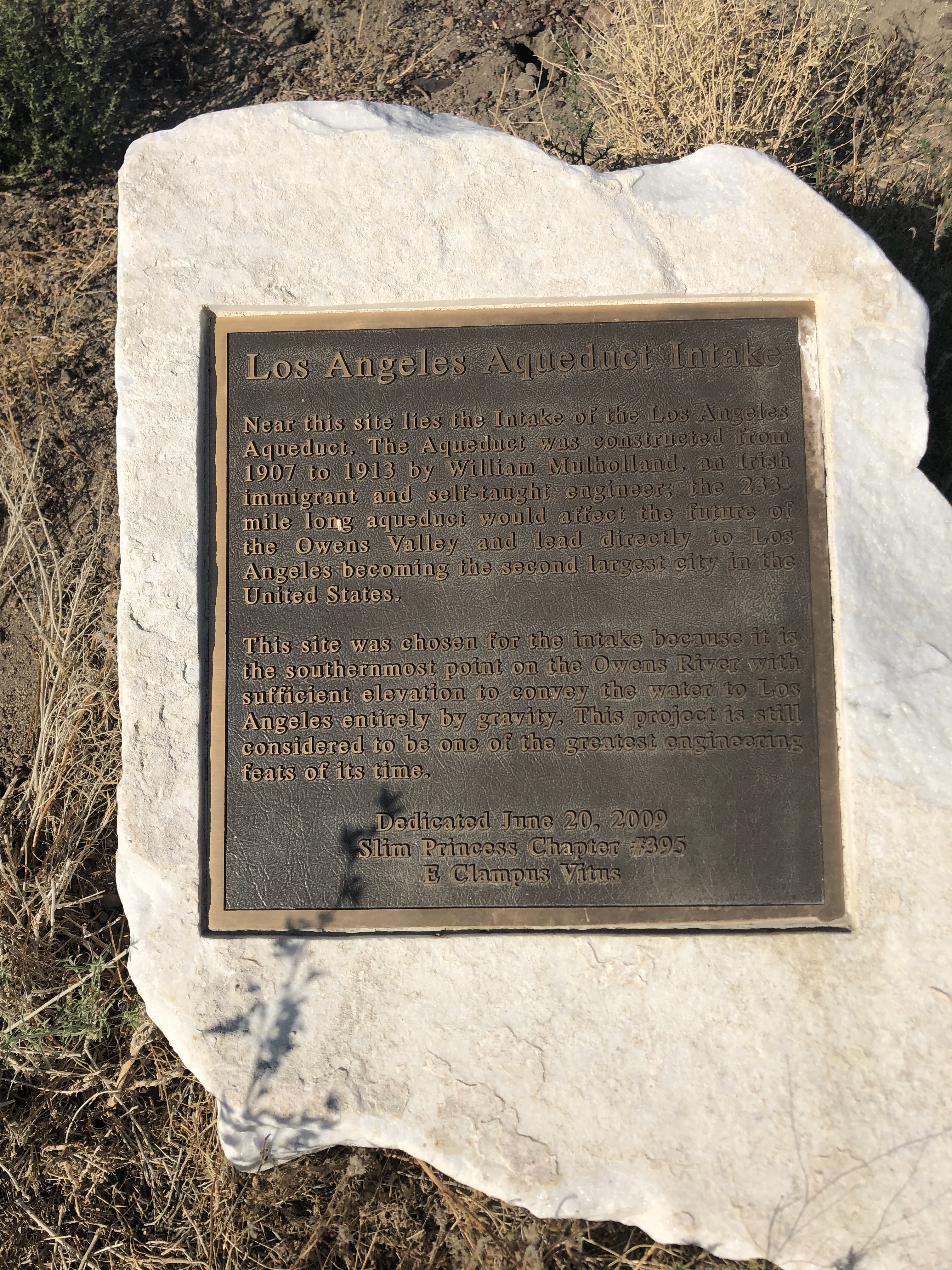The marker said that “near this site lies the intake of the Los Angeles Aqueduct.” I was close! It gave no directions to said intake, but I presumed I just had to continue along the road.