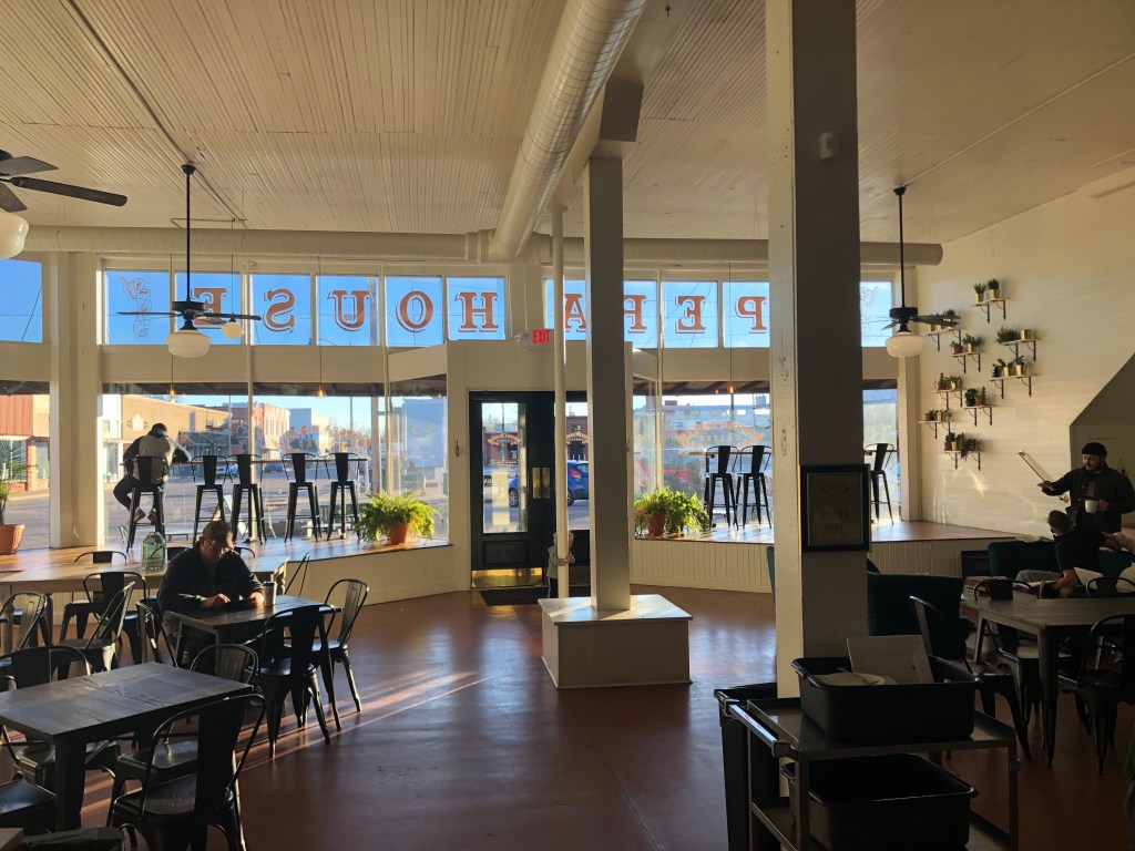 In the late afternoon I was getting a little sleepy, so I stopped for a cup of coffee in Durant, OK (population: 16,000). Opera House Coffee is a coffee house situated in a large building built in 1901 that was home to the Wilson Opera House until about 1915. Since that time it’s served as a post office and various other businesses, until its conversion to this coffee house about 2 years ago. One wishes that all cool, historic buildings like this could similarly find viable uses like this. How is it that Durant has found the right formula, but Paducah has not?