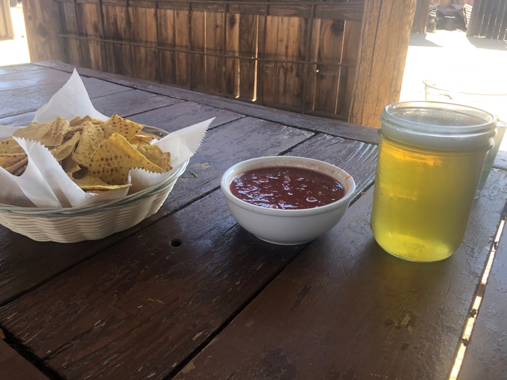 I sat out on the patio and had an order of chips and salsa which I washed down with an Elysian Hazy IPA. I wouldn’t say the food and drink were worth a 300-mile round trip, but they were tasty enough.