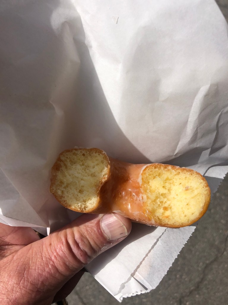 Here, the owner was a little more chatty, sharing that he bought the place 29 years ago. I asked if he bought it from Mr. Wendell himself. “No, just from my neighbors.” I asked him my usual question: Which is your best donut? He frowned, as though he’d never thought to reflect on the quality of his wares over the past 29 years. Finally, with a shrug, he said “Well, the glazed is pretty good.” So I acquired my second glazed donut of the morning.