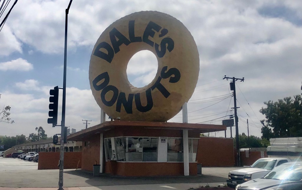 Having been fortified by fried, leavened dough, I moved on to Dale’s Donuts in Compton. There was that unmistakable, familiar, 32-foot-donut again, signalling that this was one of the original Big Donut Drive-Ins.
