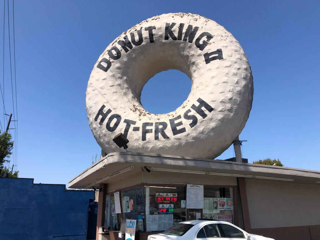 I was beginning to feel a sugar buzz, and raced up to Randy’s Donuts in Inglewood for my next fix.