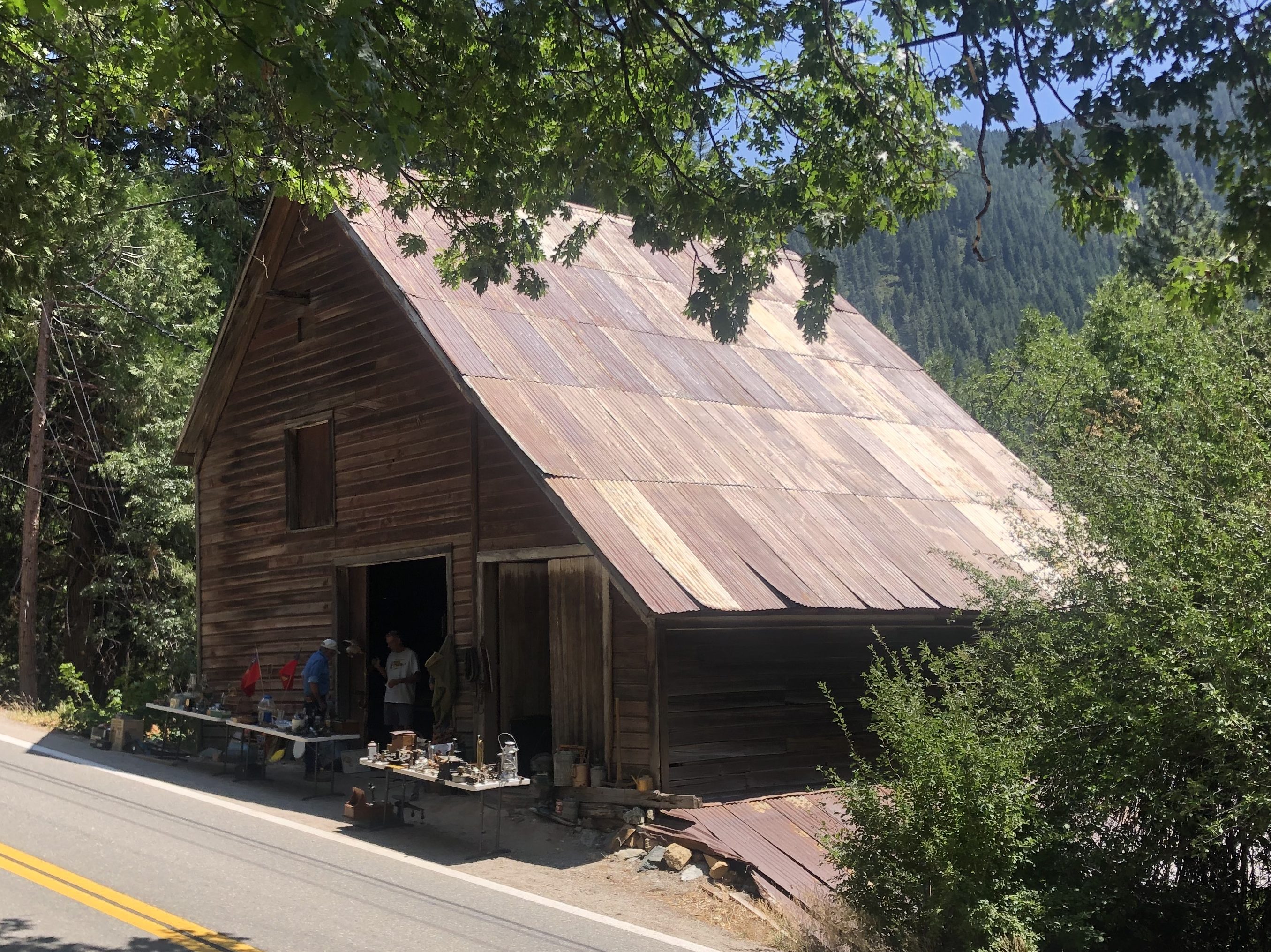 The next town I encountered after Downieville was Sierra City (pop: 200). Like so many of the other settlements along Route 49, Sierra City saw its heyday during the Gold Rush. Today the town has only a handful of structures and few signs of life. The exception to this was an enormous barn with a cluster of people standing around its open doors. I stopped to check it out.