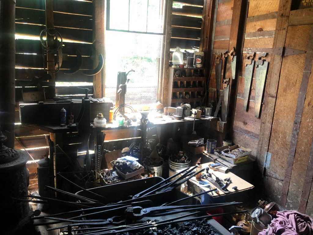 It turns out the barn’s owner, Joshua, was holding an estate sale to raise funds to open a museum in the barn. He told me that the barn was built in 1873, and when he purchased it a few years back it was full of various old (and I mean old) pieces of farm equipment, horse tack, tools, and the like. The barn is even bigger than it looks; it has two stories above ground, and another two floor below ground.