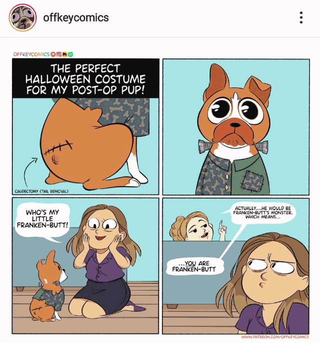 Incidently, the “Frankenstein” that the Wolfman meets is, obviously, Frankenstein’s monster. Doctor Frankenstein makes no appearance here. So, in working up the title for this film, Universal seems to have caved to the public’s common mischaracterization of Frankenstein’s monster as simply “Frankenstein.” It’s a point ably illustrated in the accompanying cartoon sent in by loyal reader Katelyn P. (who also happens to be my daughter-in-law).