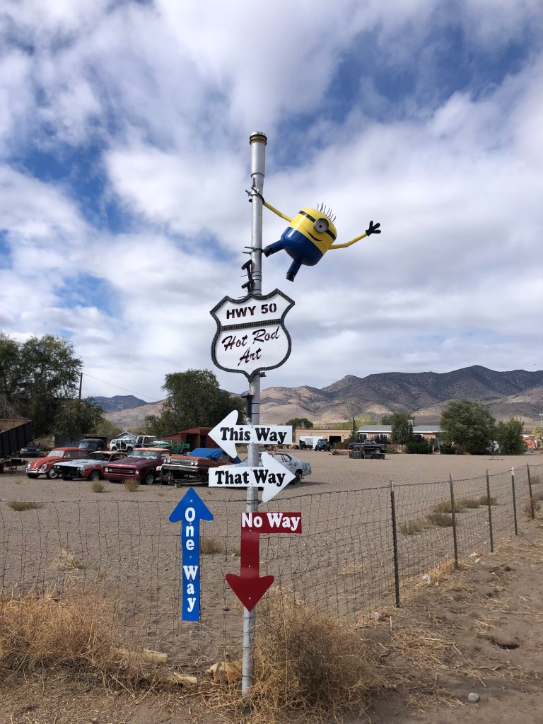 My waitress was very authentic and friendly, though. She saw me consulting my Rand McNally atlas at the table and asked me about my trip. It turns out that she is from Sacramento, and has noticed the same US 50 sign and wondered about Ocean City, MD as well. But here in Fallon is as far as she ever got. She’s raising an 11 year old, and hopes that, after he’s graduated from high school, she can do some travelling. By which she means getting an hour or two out of Fallon.