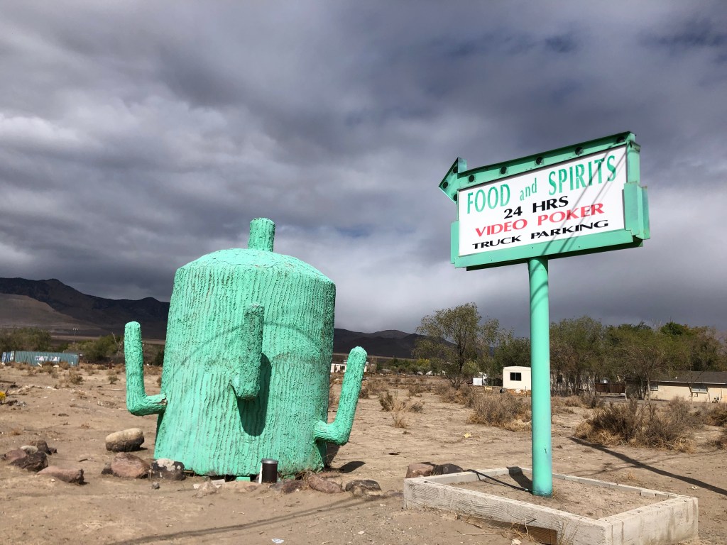 Road trippers along US 50 have long admired the odd, cactus-shaped water tank (?) on the Oasis’ property. Admittedly, it’s not especially well executed, and it’s not especially attractive. But out here there’s not a lot of competition for best-dressed water tank. So somehow I have admiration for this spearmint-colored cactus. I guess it’s because out here, in the middle of nowhere, with presumably no code enforcement and no competition from nearby businesses, there’s little reason to gussy up a water tank. But the good folks at the Oasis took it upon themselves to do so. I’ve commented before that there’s something about the desert that brings out this kind of whimsy.