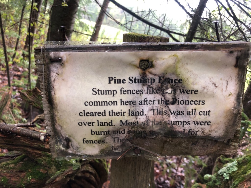 Here and there along the trail someone had staked small paper signs, obviously not suited for outdoor use. They seemed intended to educate visitors about various aspects of pioneer life.