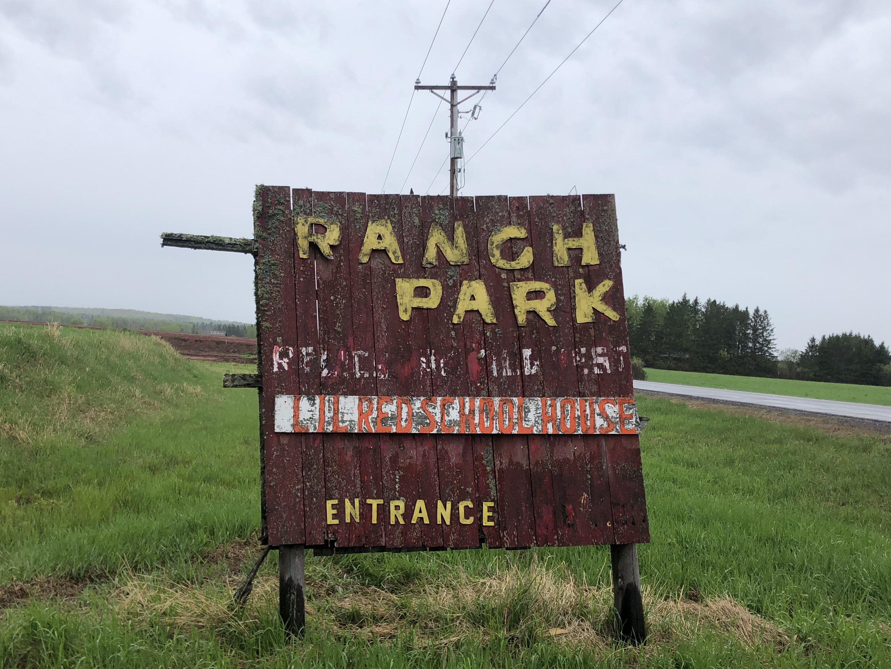 I’m now finally able to share the whole story. It was a cold, drizzly spring day in rural Wisconsin. The somewhat rustic attendant at the nondescript gas station noticed my rental car’s Florida plates and made the observation that I was a long way from home. I told him about this road trip, and he said, “Well, then I reckon you oughtta check out the old Sandor place. He built an Old West town to entertain the kids while families camped on his farm. It’s abandoned and pretty run down, but it’s still worth a gander.” I told him I was game, and he provided me with moderately vague directions, using terms like “Bill Rabbs farm” and “the place where the school bus stops” as landmarks. Undeterred, I drove about a mile off of Route 2, and spotted the old, weathered sign the attendant had mentioned.