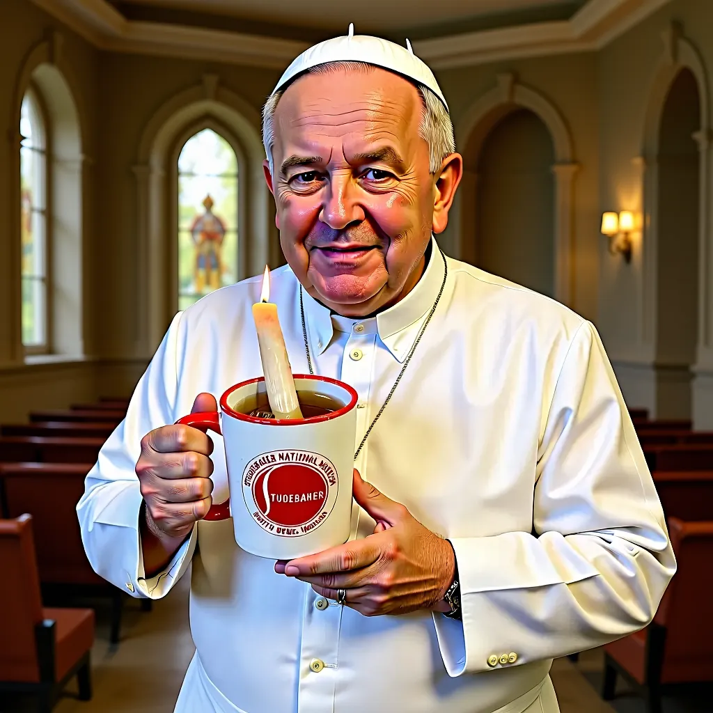 Add the first four ingredients to a shaker with ice, and shake it. Then, pick up the shaker and shake that. (Haha!) Strain the mixture into some ridiculous non-barware. (I used my Studebaker Museum coffee mug.) Maybe add one of those giant ice cubes that are all the rage these days, simply because they’re ridiculous. If you want to make the drink a little less disgusting, you can dilute it with some tonic water. Garnish with your own token of perversity. I used a candle, which, it may be remembered, was the murder weapon used by the narrator in this tale. Seriously.