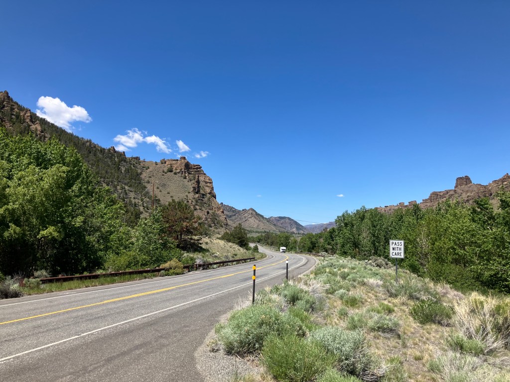 Instead of the motel breakfast, I got a gas-station coffee and donut. I then got onto the U-28 scenic byway, which carves its way through the Colorado River gorge towards Grand Junction. It was so spectacular it even made my donut taste good.