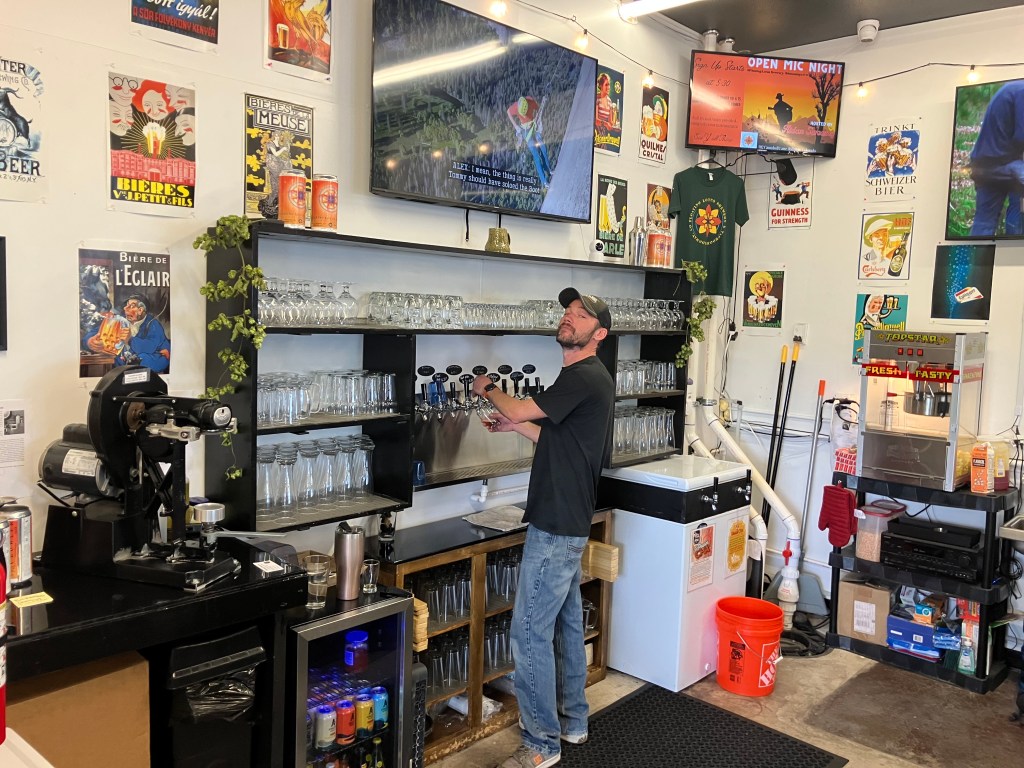 In the town of Ridgway, Colorado (pop: 1,300) I stopped in at the Floating Lotus Brewery. It’s a friendly, casual place with an airy atmosphere, two outdoor patios, a stage for live music, and a great view of the neighboring property where John Wayne filmed some scenes from True Grit. Owner/Brewmaster Kenny Conley hooked me up with his favorite beer: the Blastoplast IPA.