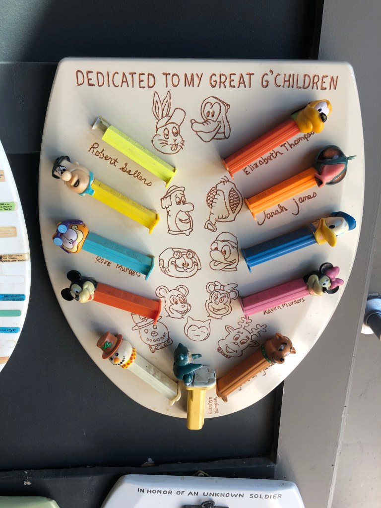 The walls are covered with the 1400-plus toilet seats that Barney decorated. Here’s just a small sample: