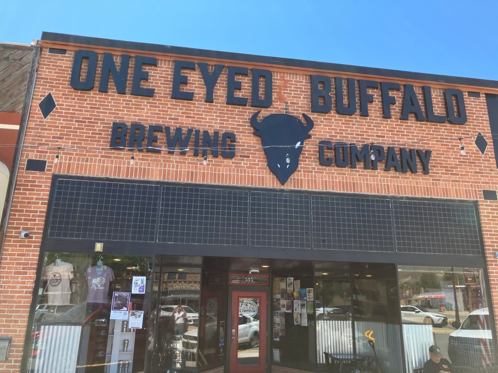tEven though I spent the evening at the Ten Sleep Brewing Company, the BOTD appropriately comes from a place along Route 20 proper. And that is the One-Eyed Buffalo Brewing Company in Thermopolis (pop: 2,725), which was the largest city on today’s trip. Thermopolis means “hot city” in Greek, in reference to the natural hot springs.