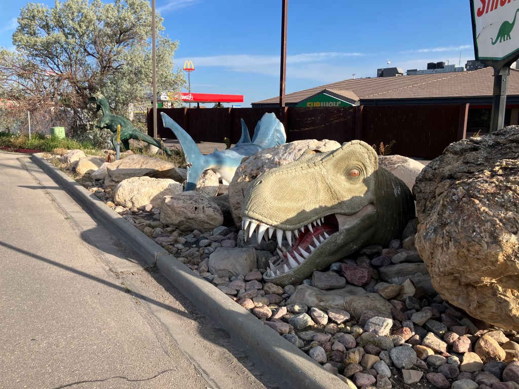 Anyway, equipped with The Best Cup of Coffee Ever, I pointed the Peregrinator west and headed out of Casper. Casper is a worthy town, situated on the banks of the Platte River and possessing a rich history as a US fort and as a waypoint for westward immigrants. But it’s a bit too big and modern for what this trip has focused on. The perfect illustration of this is Sanford’s Grub and Pub on SE Wyoming Blvd:
