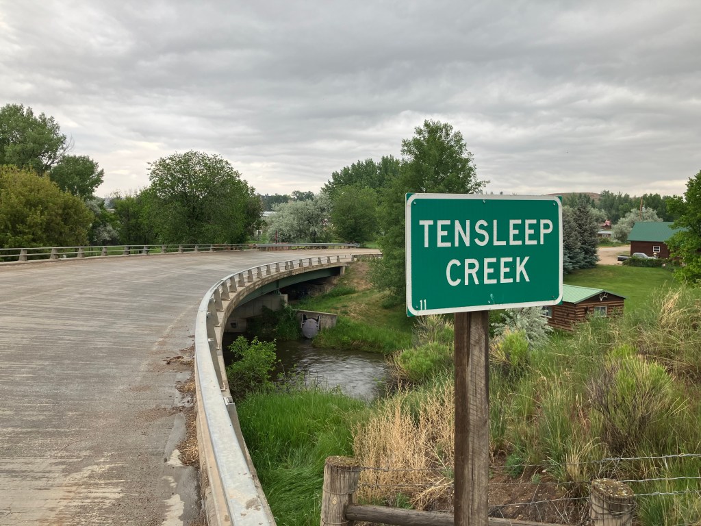 My goal for the day was Ten Sleep, Wyo (pop: 260). The name comes from Native Americans, who said it’s a ten-day (ten “sleeps”) trek from Fort Laramie. Today it’s a quiet and pleasant town situated on the laconic Ten Sleep Creek.