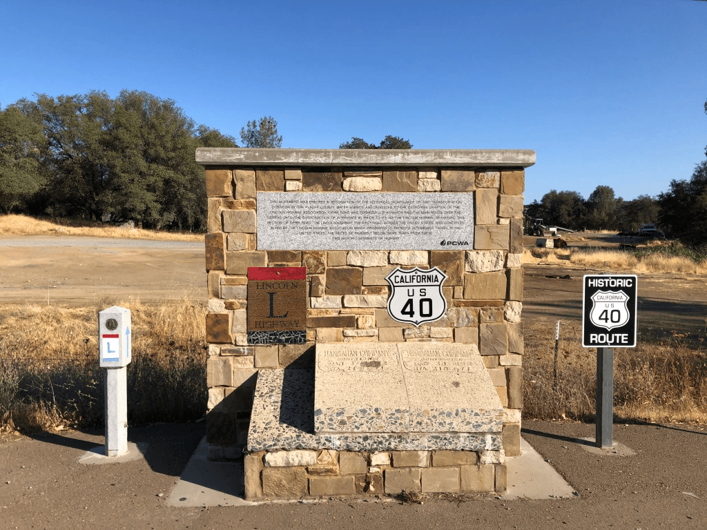 You may also recall that I once discovered a roadside memorial commemorating the Lincoln Highway and US Route 40, in Auburn CA. (In 1926, the feds adopted a numbering system for all US highways. The segment of the Lincoln Highway that passed through Auburn was rechristened with the unromantic name “U.S. 40.”)