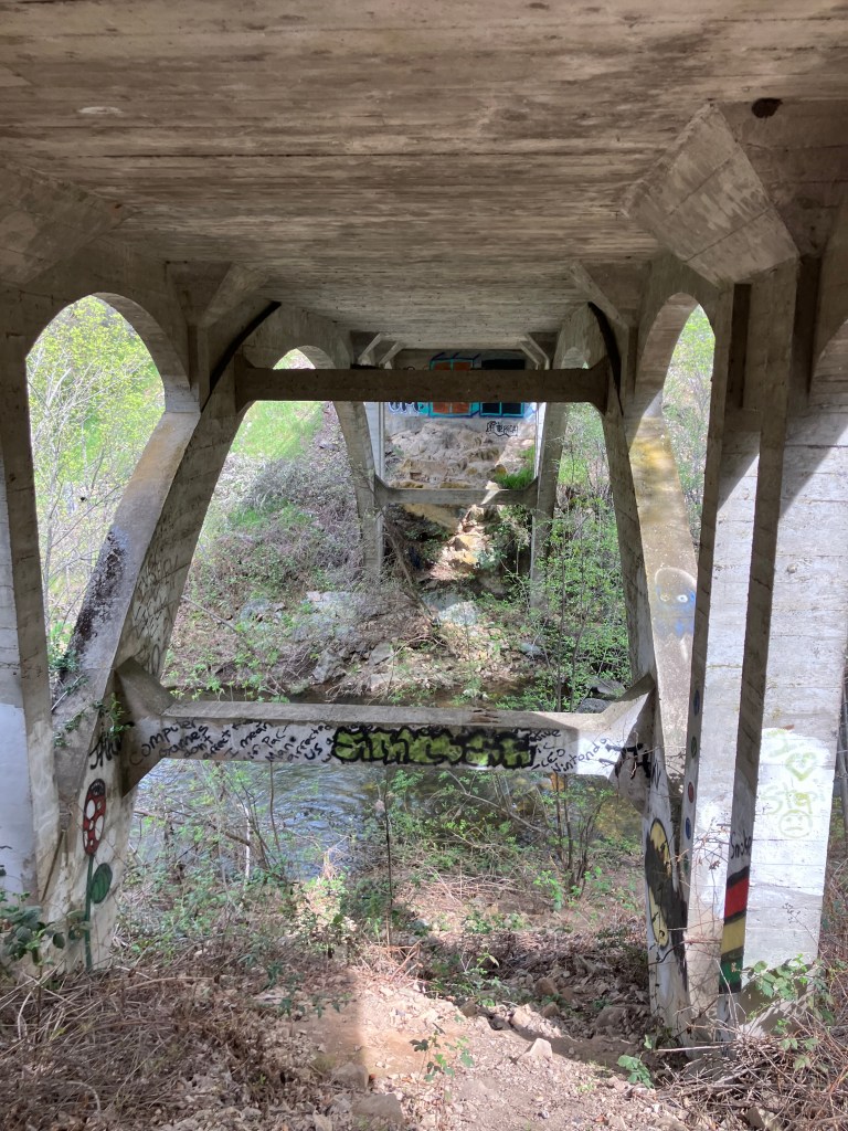 The bridge is in remarkably good shape for over 110 years old. A little research revealed that it’s one of only two “Turner Mushroom Slab” bridges in California. Evidently an engineer named Claude Allen Porter Turner patented a “flat slab support system” (which my wife tells me I could benefit from). But I think it actually has something to do with the way the concrete slabs are designed and assembled. Coincidental fun fact: Turner was born in 1869 in Lincoln, Rhode Island!