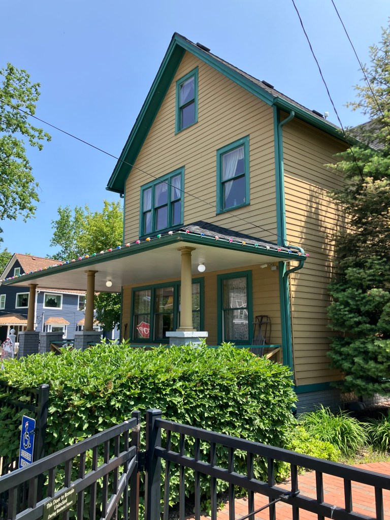 But then there’s Cleveland (pop: 363,000). US 20 cuts through the town on surface streets, and the experience of driving it is infinitely different from the peaceful cruise through innumerable small towns that I’d experienced the past few days. This morning’s drive through Cleveland was crowded, people were honking, blight was evident on both sides of the road. I did make a small detour to find the house that was used for the exterior shots of A Christmas Story (1983). But I got lost and found myself in a jungle of massive, looming bridges that cross the river at all angles. And that’s when the magic happened: I saw what makes Cleveland unique. I saw 200 years of history. Would it be going to far to say I saw its heart?