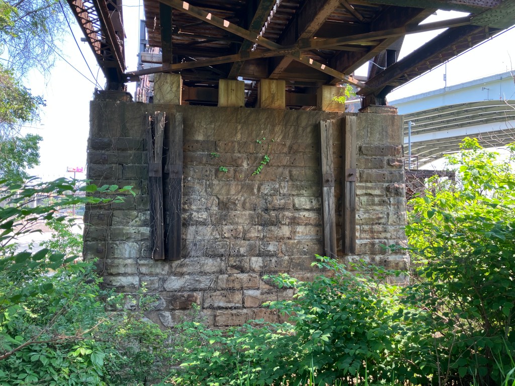 Is that impressive, or what?? It turns out the pedestrian/bike path was placed atop an 1872 railroad bridge. Trains haven’t come through here in decades, so about a decade ago the “rails to trails” people retrofitted it.