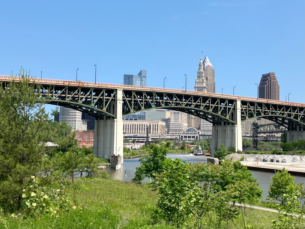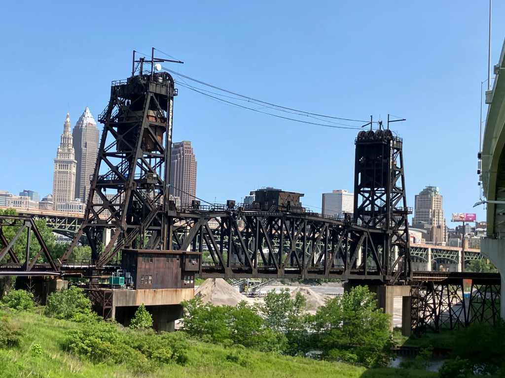 Evidently Cleveland has over 300 bridges, many of which cross the Cuyahoga River. I’m not going to make you view them all. But you’ve got to admire the engineering and the grit that went into building these over the past two centuries. And you also have to admire how modern Clevelanders somehow navigate daily through this confusing labyrinth.