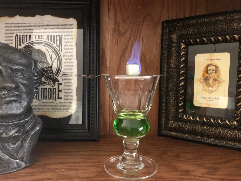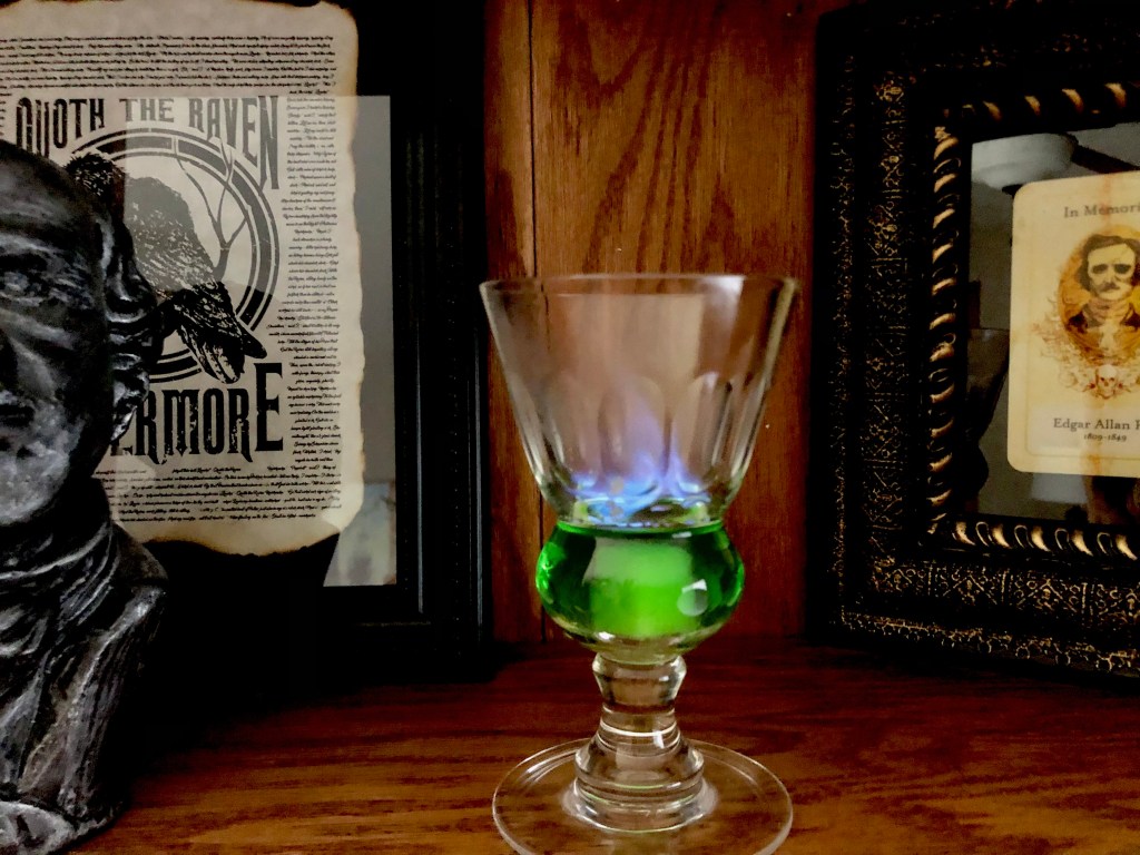 One drink that shows up on a couple of Halloween cocktail lists is absinthe–not as a mere ingredient, but rather as the whole drink. The unearthly green color is in the Frankenstein vein, but more to the point, it has a mysterious and Byzantine history that involves hallucinogenics, evil spirits, and the likes of Edgar Allan Poe. Let’s review: