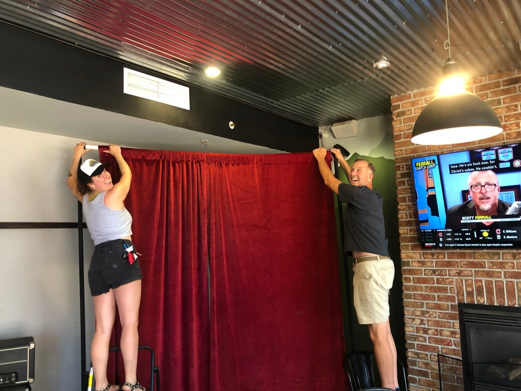 This beer clocks in at 9 percent ABV, which is why it’s only available in a 10-ounce pour. You can’t drink just one, though, so I was compelled to order a second. Then Sam bought me a third as a way of saying thanks for helping her with the stage curtain. It wasn’t until after I finished that one that I realized I hadn’t taken a picture of my drink. Given my dedication to my readers, I was compelled to the counter and asked for another pour purely as a photo op. Heather insisted that this one was on the house, and I felt it would seem ungrateful not to drink it. This all explains why I’m sitting here trying to sober up before heading back down the mountain to Placerville.