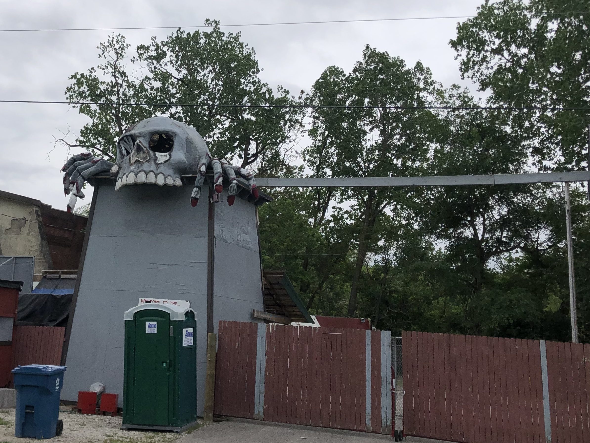 Walking into Howard’s Mystic Saloon is like entering an ossuary. You’re greeted by a giant skeleton standing just inside the door, and as your eyes adjust to the darkness you notice that all the chandeliers are decorated with skulls and bones. More skeletons hang from the ceiling, and the entire wall behind the wall is covered with black skulls.