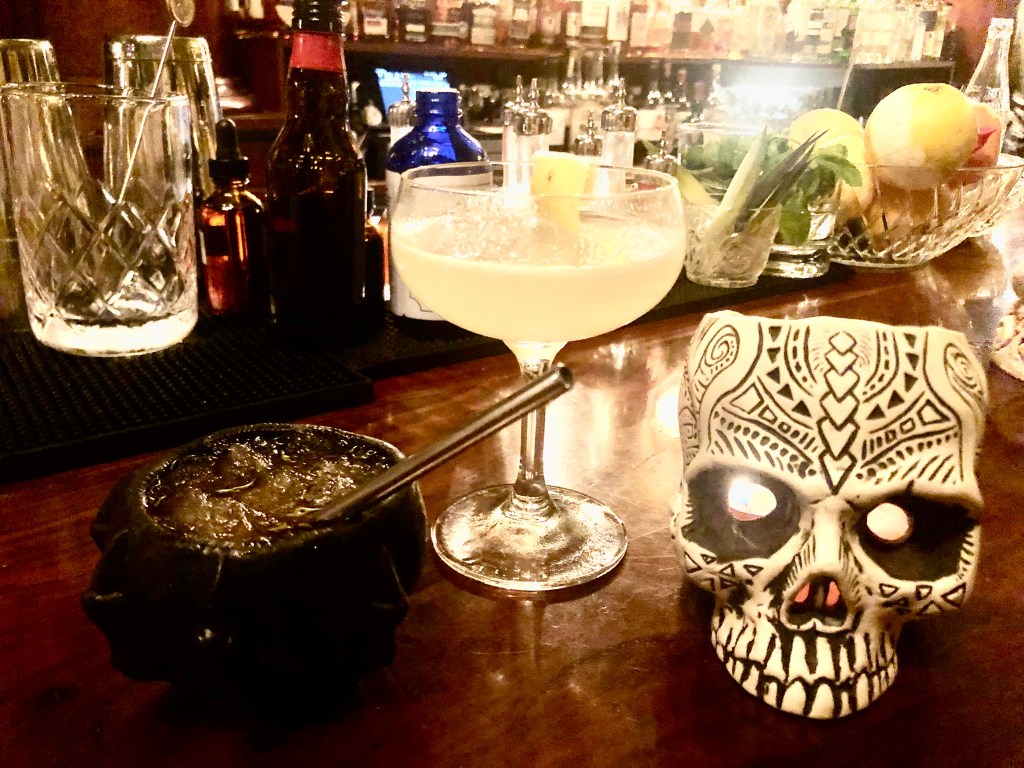 The Ratings: The appearance is just what the doctor ordered: Putting the drink in a cauldron is a great Halloween touch. The drink is dark and mysterious, with crushed ice giving it texture and reflecting the eerie lights of this dimly-lit bar. I have to admit the atmosphere of the bar definitely adds to the appearance of this drink. There’s a lesson in there somewhere. But the overall effect was just what I was looking for. I’m giving it 4 points.
