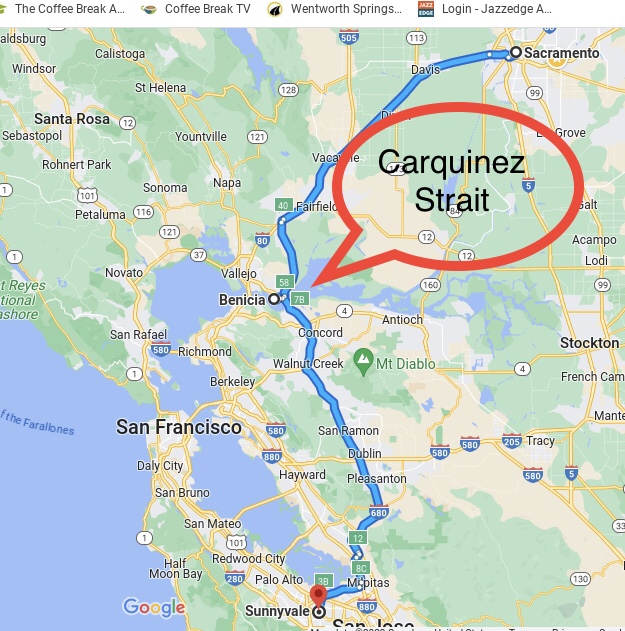 Eons ago, when I finished college, I moved to Sacramento, and in the succeeding years I made many weekend trips back to the familial homestead in Sunnyvale. The trip required crossing the Carquinez strait on the Benicia-Martinez Bridge. In those days, the bridge had traffic going in both directions, but in 2007 a second bridge was opened and each of the two bridges was henceforth devoted to traffic in a single direction.